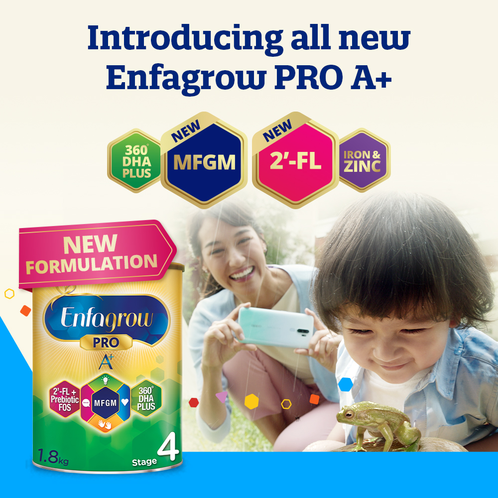 With over 100 years of experience in pediatric nutrition, Mead Johnson Nutrition has scientifically formulated Enfagrow Pro A+ Stage 4 with a unique blend of nutrients that are important for overall mental and physical development.