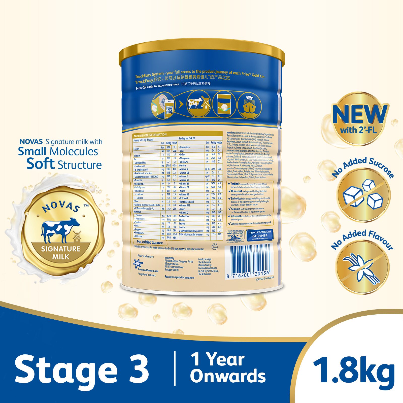Made from high-quality NOVAS Signature Milk that is sourced directly from our own farms in the Netherlands, crafted by our Holland Dairy Science Expertise.
