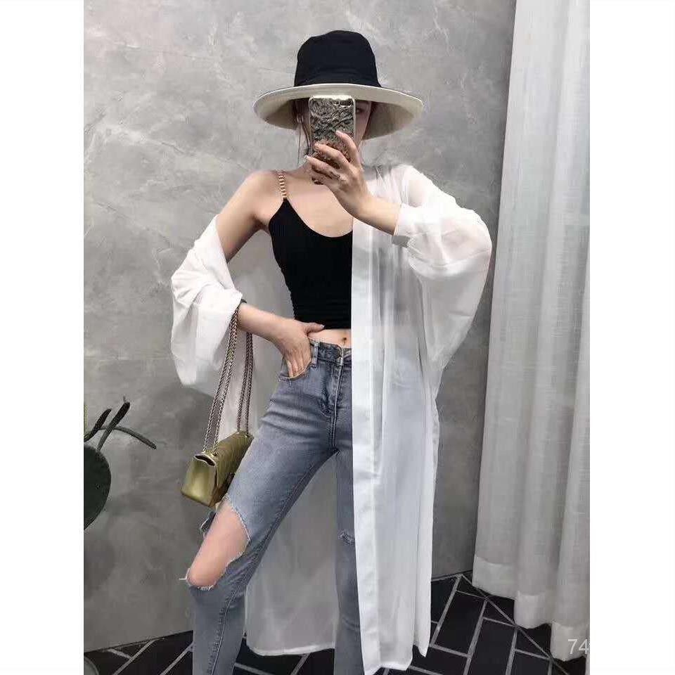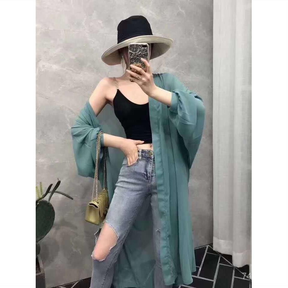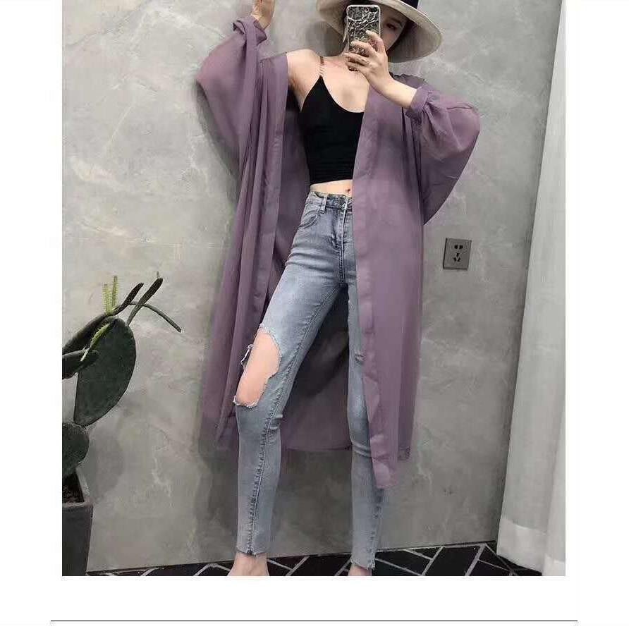 Sun protection clothing women's mid-length chiffon shirt cardigan Korean thin sh防晒衣女中长款雪纺衫开衫韩版薄款披肩百搭沙滩外套空调衫Koihime Chen