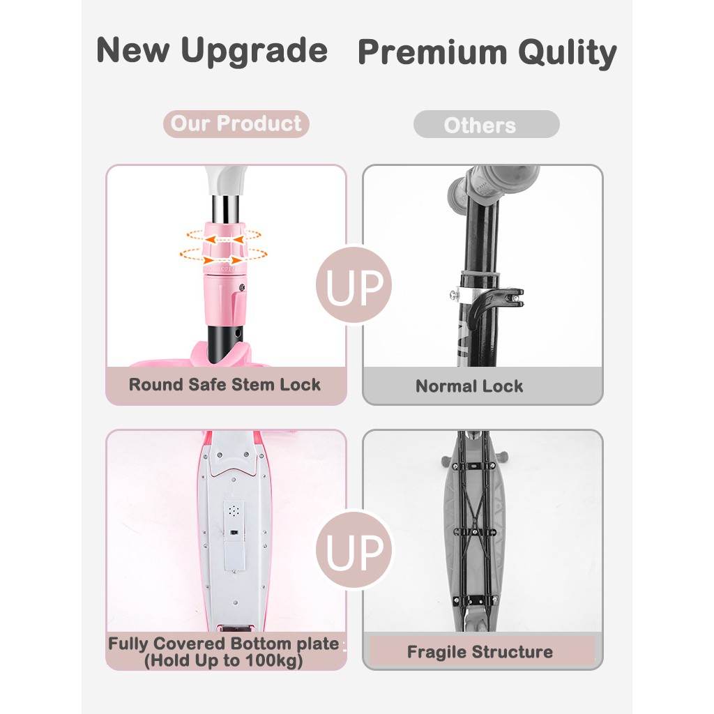 • MULTI-COLOR WHEEL LIGHTS: This 3-Wheel Kick Scooters for Kids feature colorful LED turning wheel lights that light up in a variety of flashing colors as you scoot, adding a fun twist to the ride! It also makes the scooter stand out
