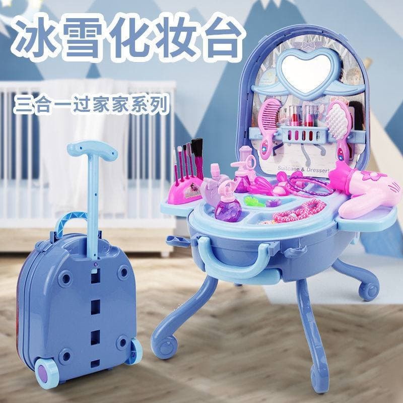 3 in 1 Frozen Make Up Table Suitacae Pretend Play Set Gift for Kids