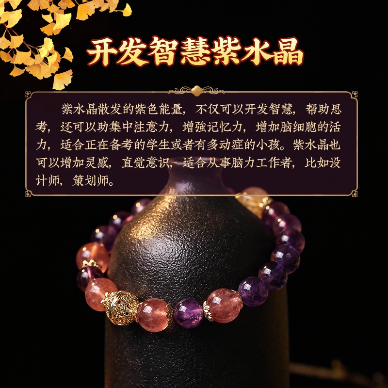 ❷ 能够开发智力、助力学业成功。紫水晶散发的紫色能量?,不仅可以开发智慧?,帮助思考?,还可以助集中注意力,增强记忆力,增加脑细胞的活力?,适合正在备考的学生或者有多动症的小孩?。紫水晶也可以增加灵感,直觉意识,适合从事脑力工作者,比如设计师,策划师?。