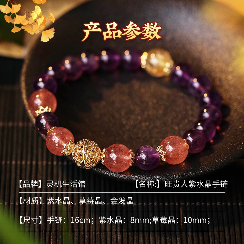 产品尺寸:手链:16cm;紫水晶:8mm;草莓晶;10mm;黄水晶:10mm;