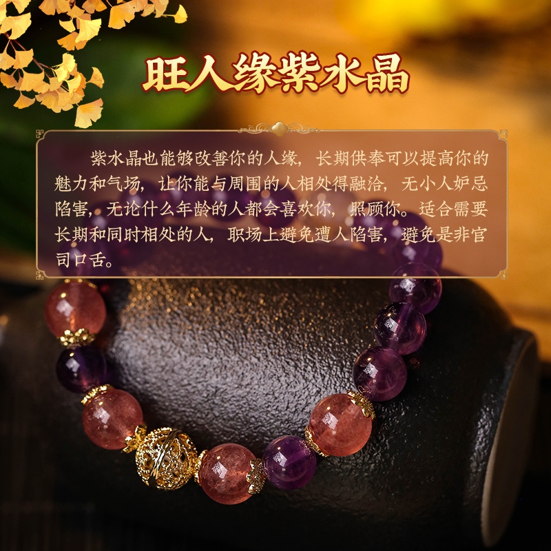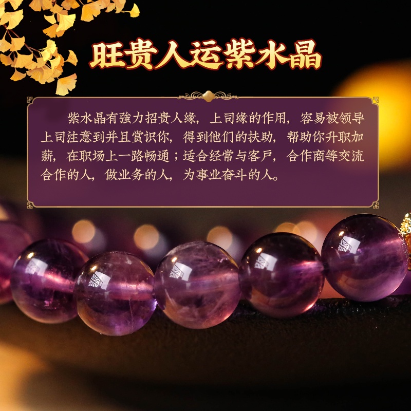 【紫水晶】又名社交之石?,浪漫而神秘?,紫水晶集灵气,精纯强大与一链,寓意好事成双,学业事业双成?,聚财气招贵人;若事业不顺,工作遇到平静,应该长期佩戴紫水晶,改善个人气场和磁场,缓解焦虑,平稳思绪❤️。