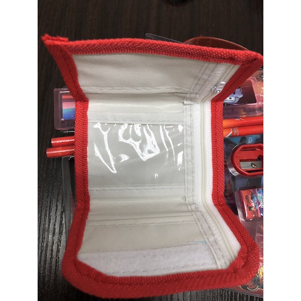 Comes in a very nice PVC Box with wallet, 2 Pencil, 1 Sharpener, 1 Eraser, 1 Ruler
