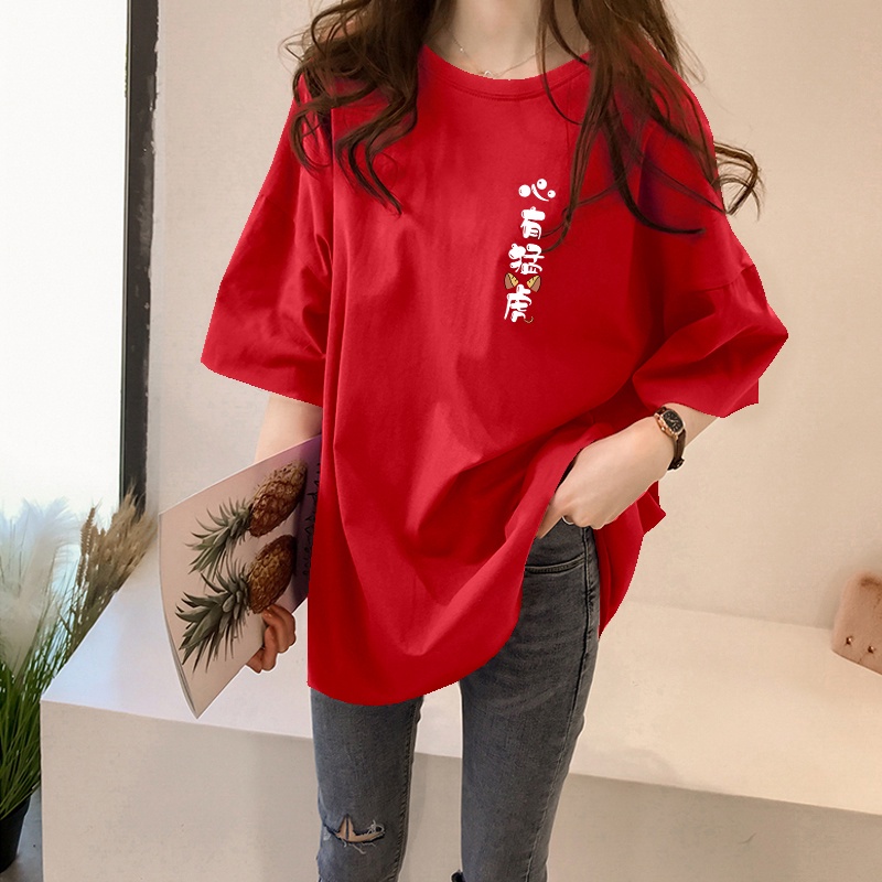 ?Korean House?2022 CNY Chinese Happy New Tiger Year Women Summer short sleeve Tshirt Fashion Clothing and Clothes Round Neck tops