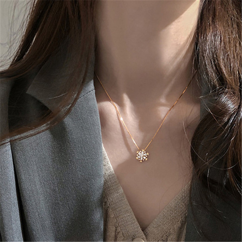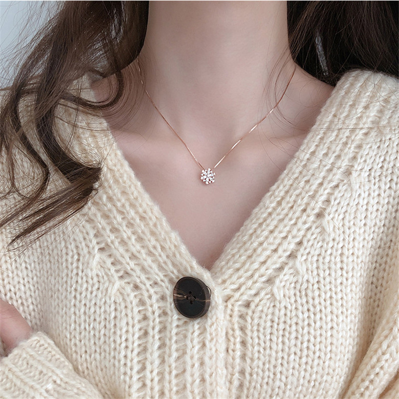 ※Hot Sales※ Shiny Necklace Jewelry Fashion Alloy Rhinestone Snowflake Pendant Necklace for Women