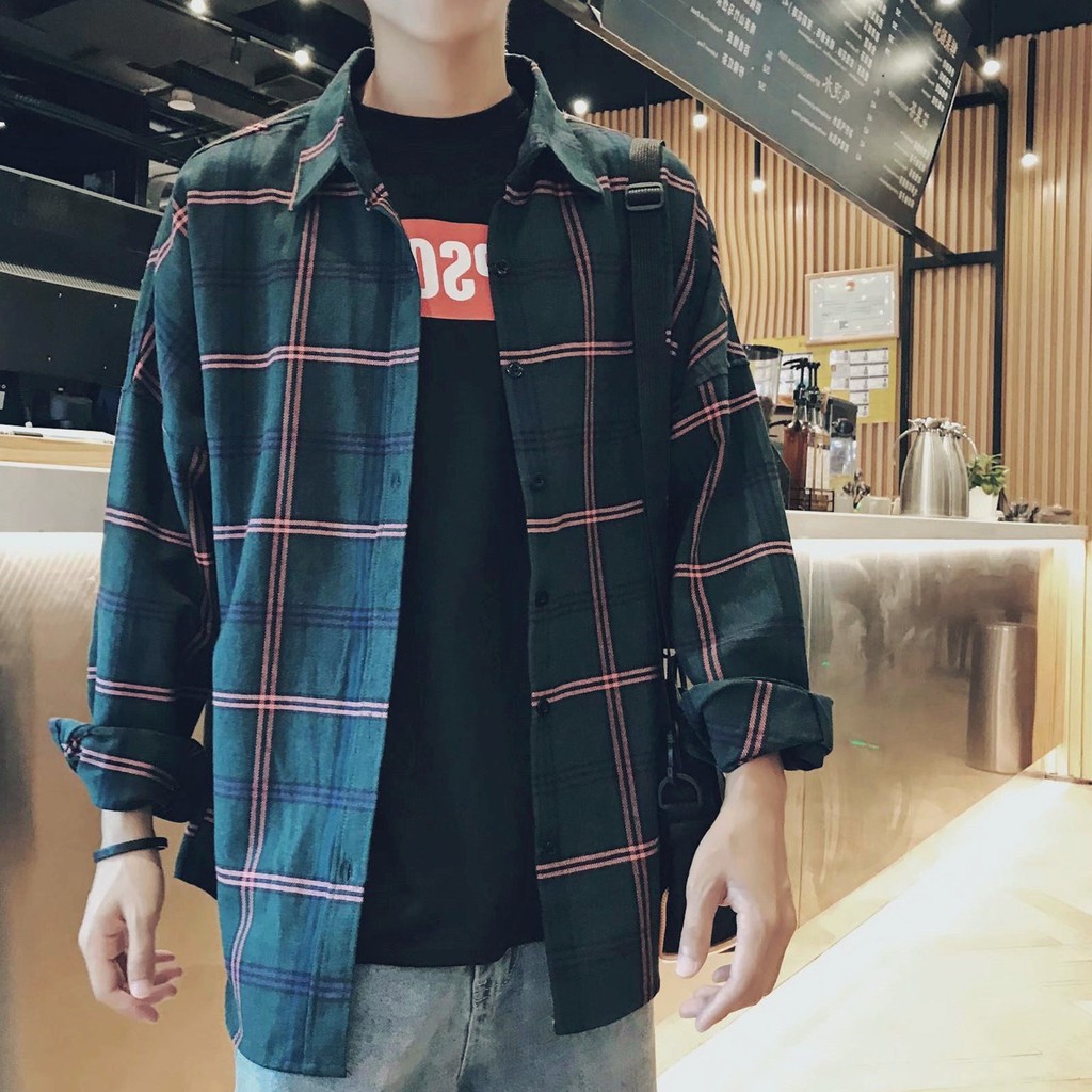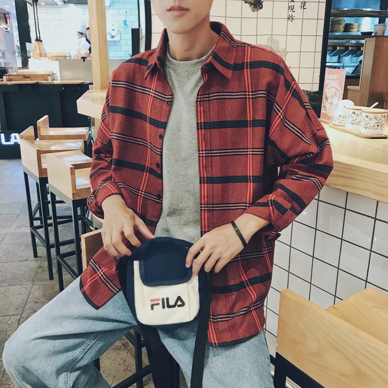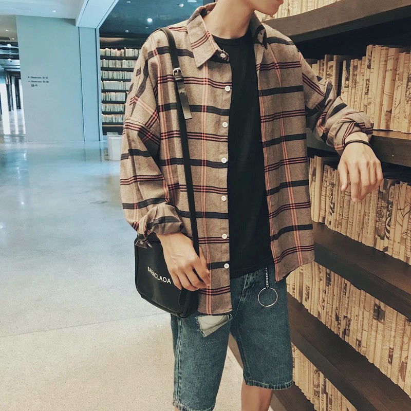 【FIN】Check Shirts Spring and summer sun protection clothing plaid shirt men loose Korean chic trend youth long-sleeved shirt thin jacket