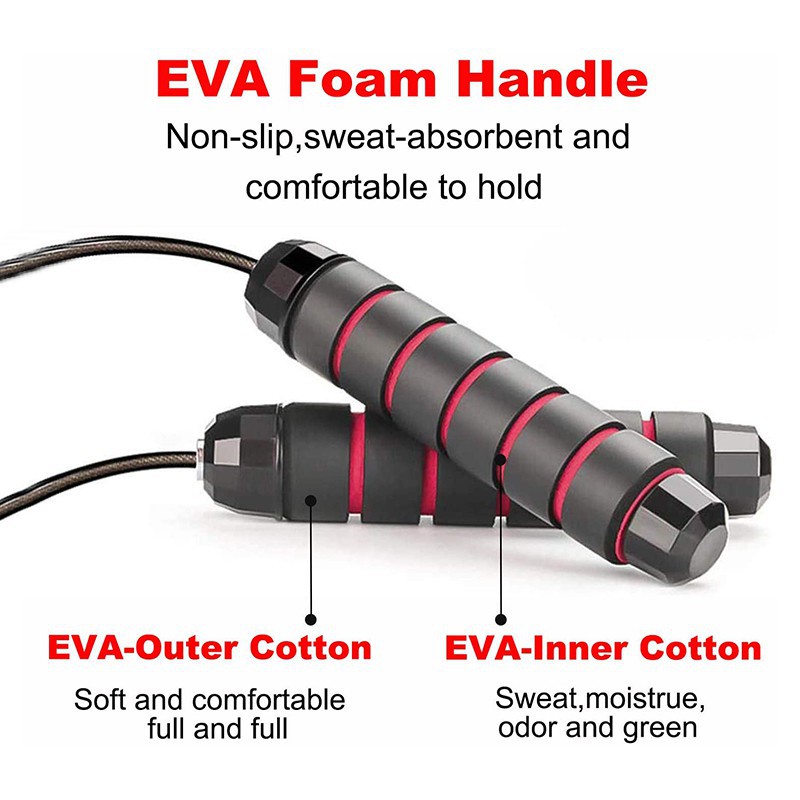 The fast speed skipping rope cable with ball bearing tangles and 6-inch memory foam handle is perfect for aerobic exercises, such as speed training, endurance training and gymnasiums