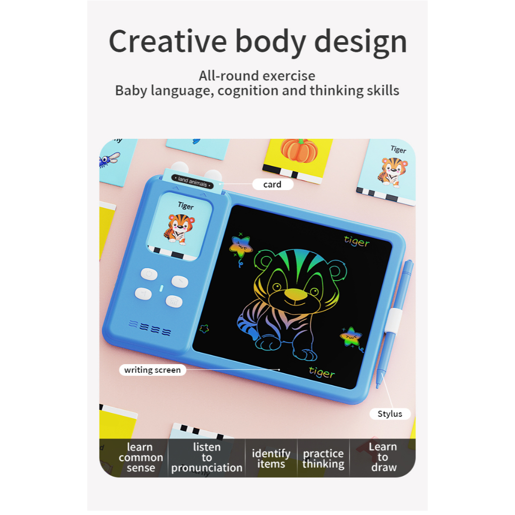 Invest in your child's education and creativity with our flash card reader with drawing board. Order now and watch your child's love of learning grow!