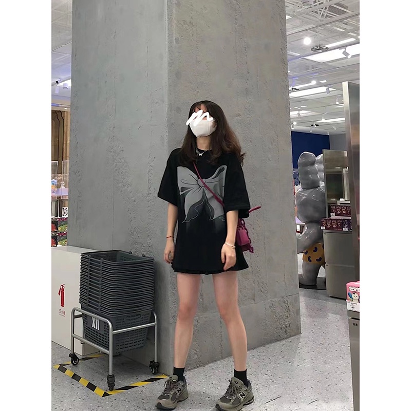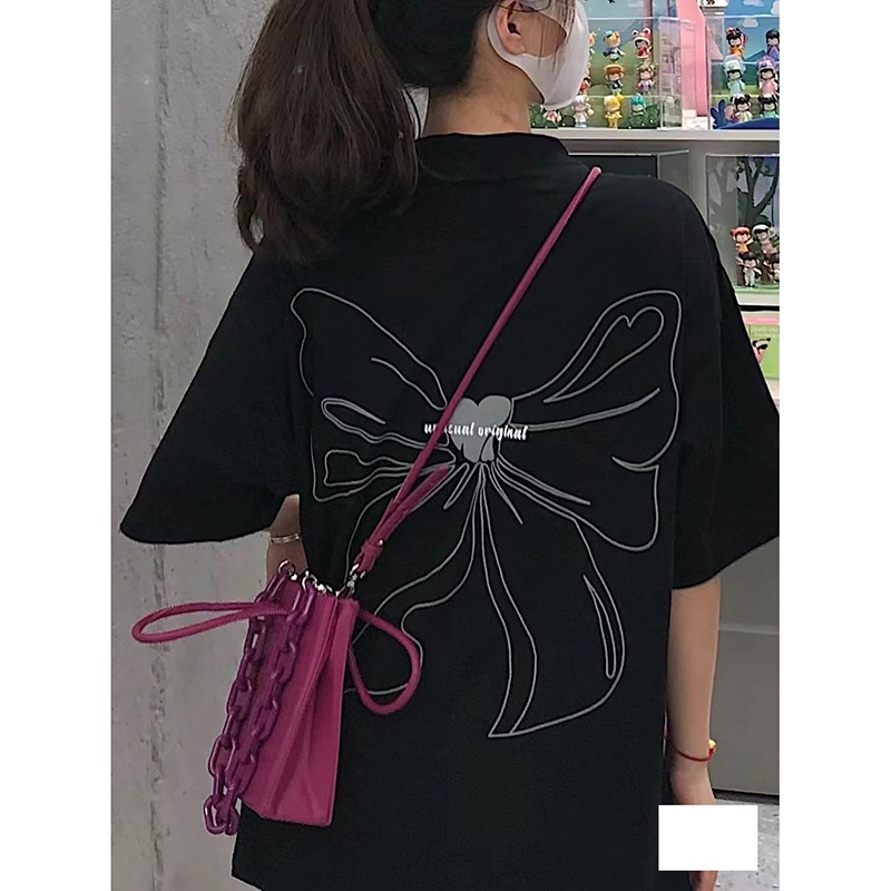 Korean Summer T-shirt Women's Fashion Bow Print 2022 New Loose Female Oversize Student Clothing Harajuku Short Sleeve Tops Baju
