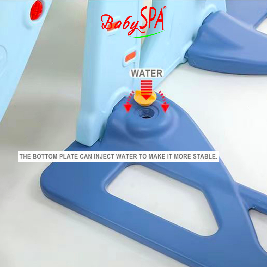 ? The base that can be filled with water to produce a more sturdy structure and strong load-bearing capacity up to 30kgs, allow the kid to play without worry and accompany your child for a long time.