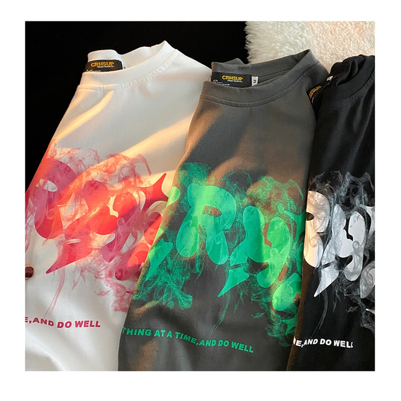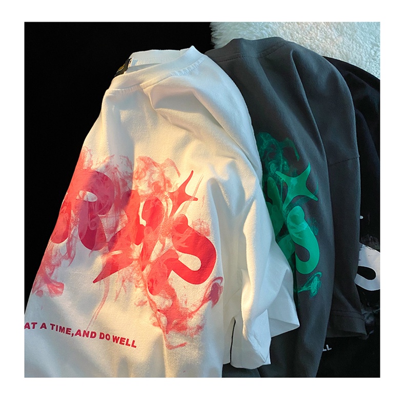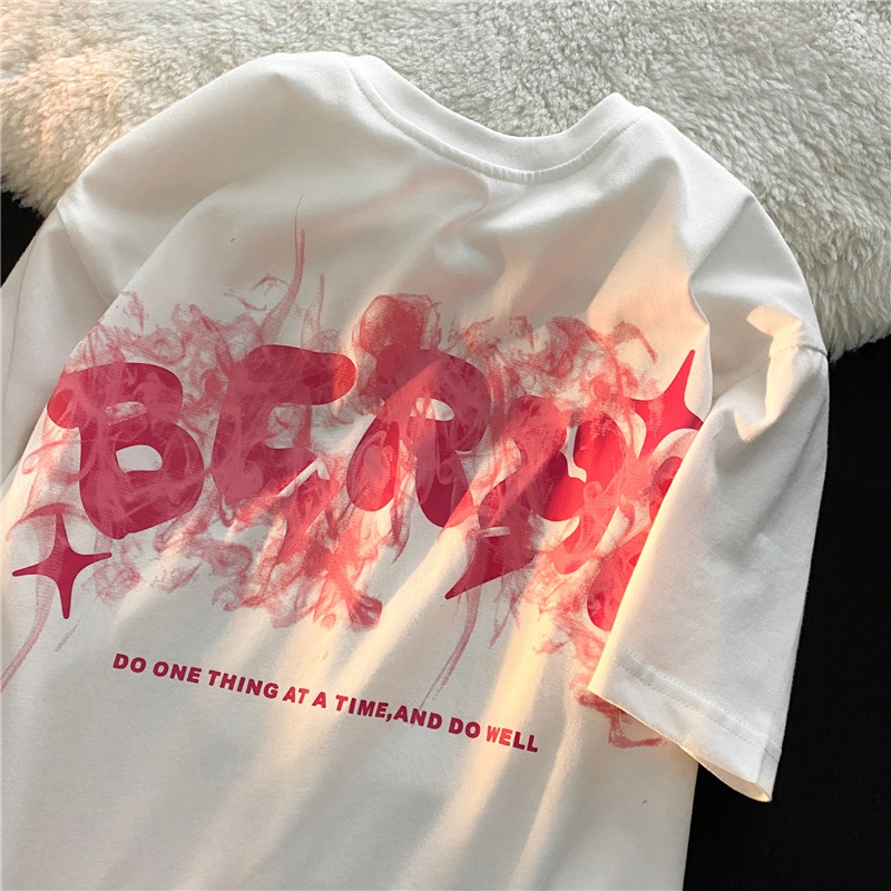 Summer 2022 New Short Sleeve Women's T-shirt Flame Letters Print Loose Korean Oversize Female Fashion Student Clothing Tops Baju
