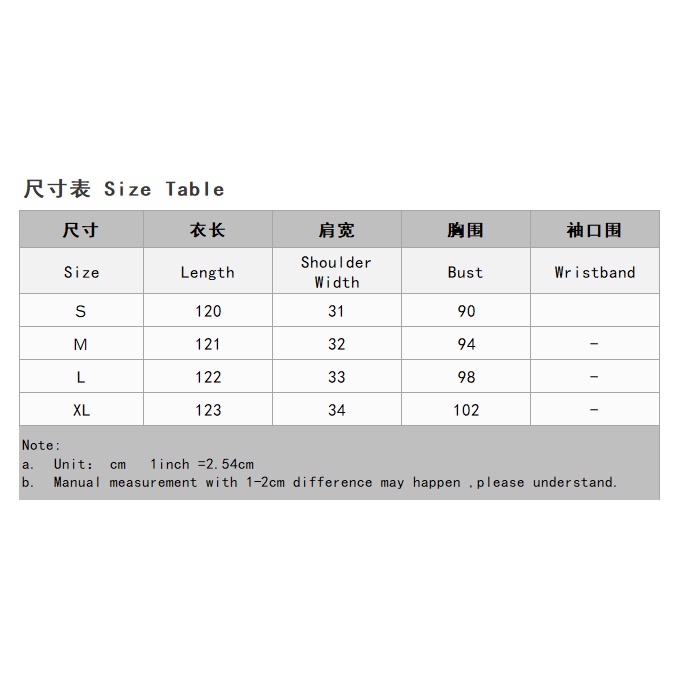 * Please allow a slight (±2cm) manual measurement deviation of the size data.
