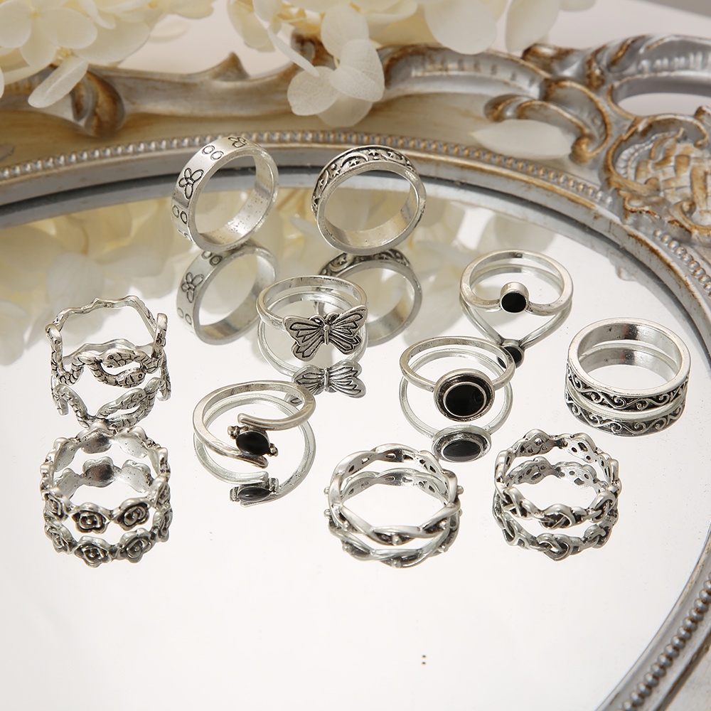 ? Name:11pcs/set Fashion Y2K Adjustable Oil Dripping Snake Bead Ring Set Resin Butterfly Twist Ring Accessories Jewelry
