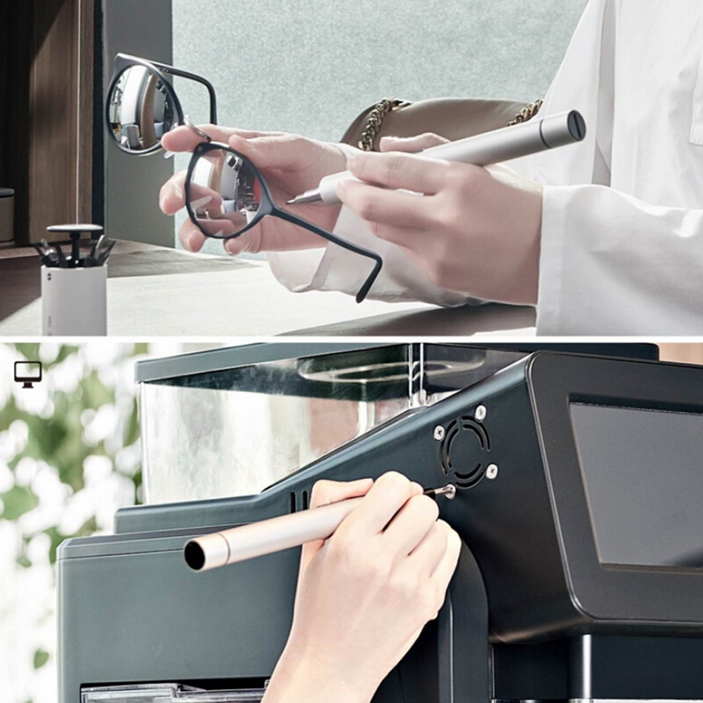 3. Slim aluminum alloy housing with pen shape design, built-in 2 x AAA batteries can work 8 hours continuously.