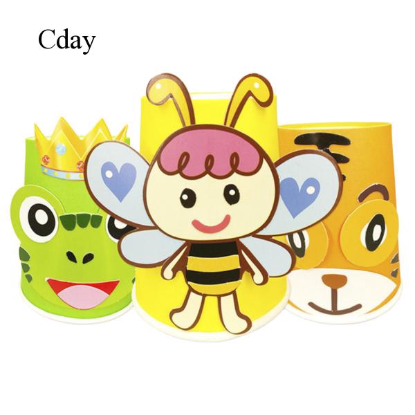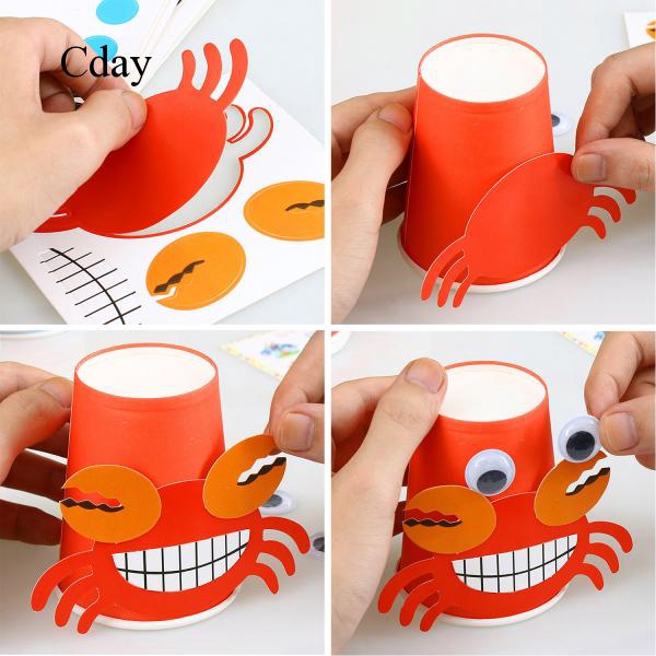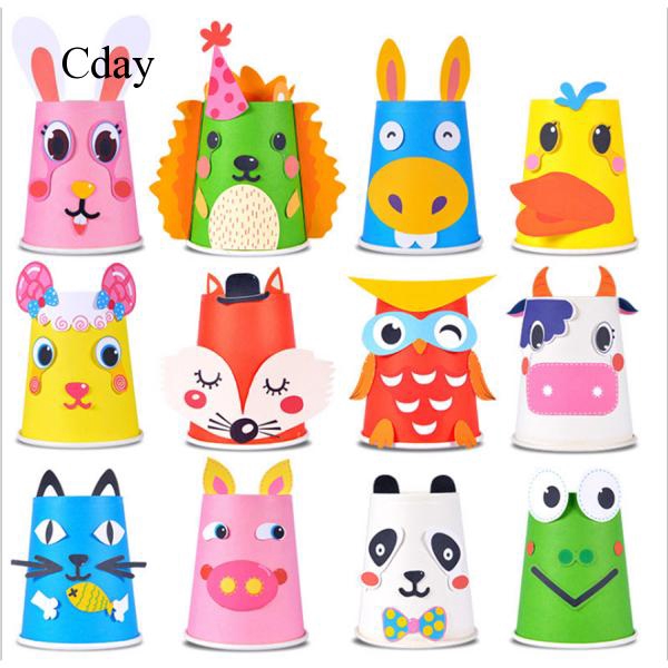 Cday 12PCS Kids Children DIY Handmade Paper Cups Craft Art Kit with 12 Animal Patterns for Kindergarten Preschool Educational Toys