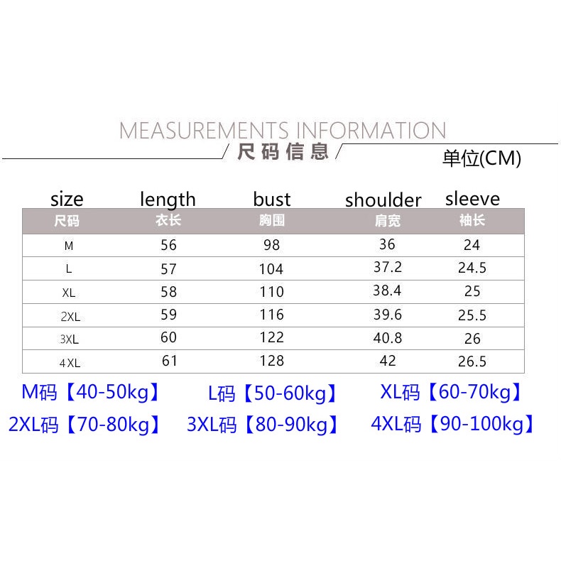 Size: 40-50kg for M, 50-60kg for L, 60-70kg for XL, 70-80kg for XXL, 80-90kg for XXXL, 90-100kg for 4XL