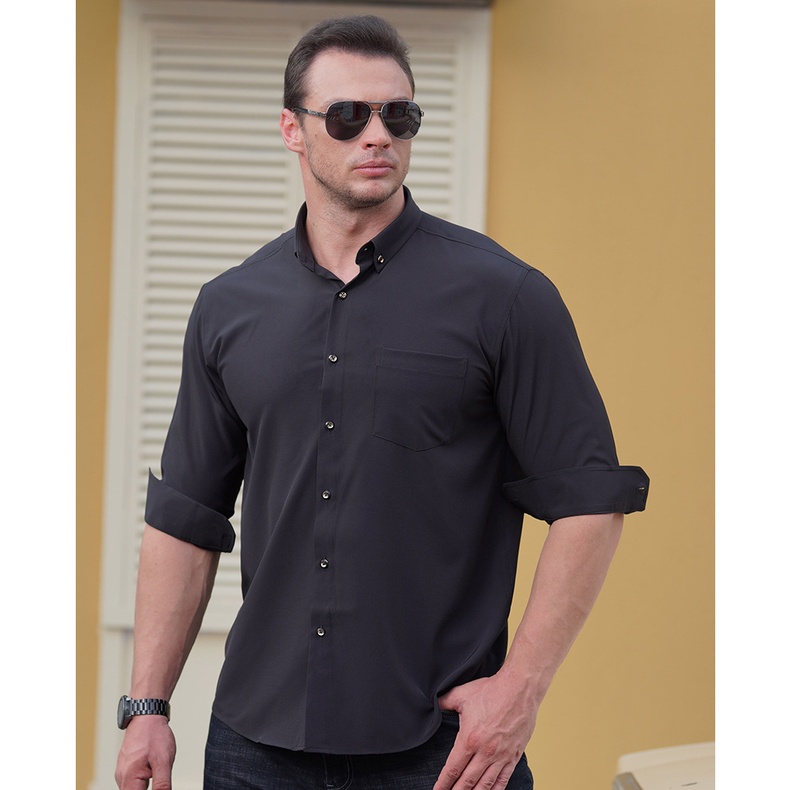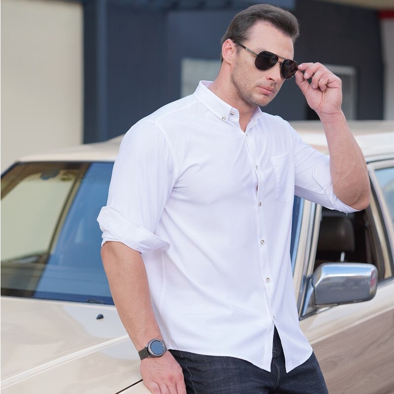 【Plus Size】10XL Men Long Sleeve Shirts Fashion White Black Business Work Casual Plus Size Man Solid Color Stretch Clothing