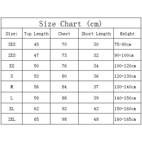 Size Chart:3XS/2XS/XS/S/M/L/XL/2XL