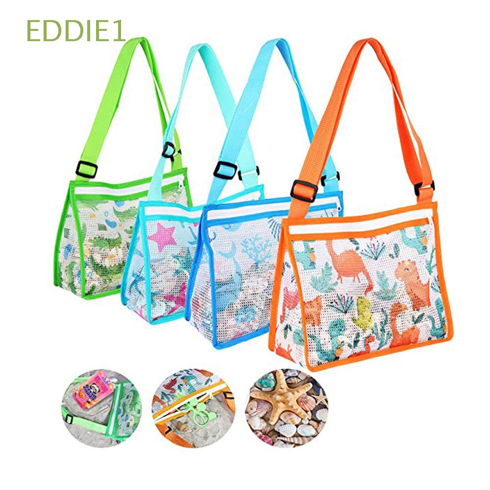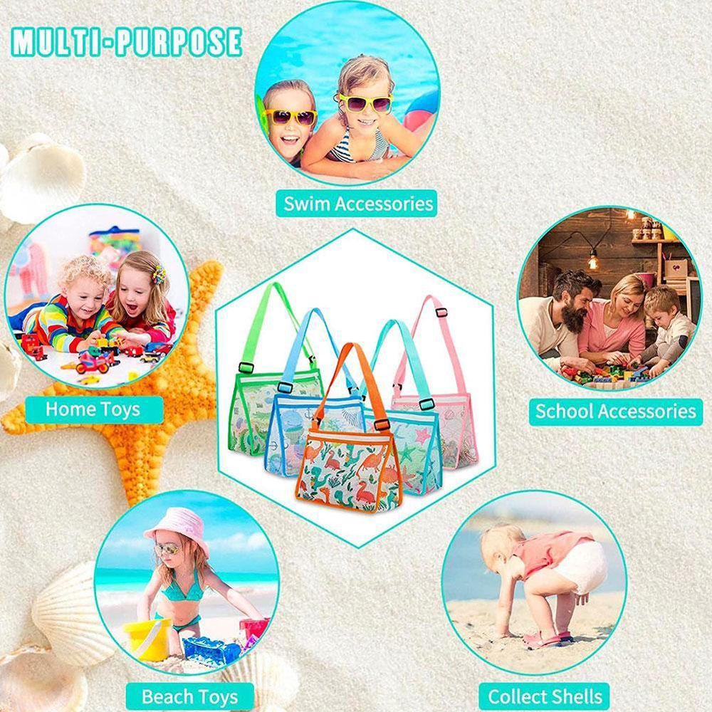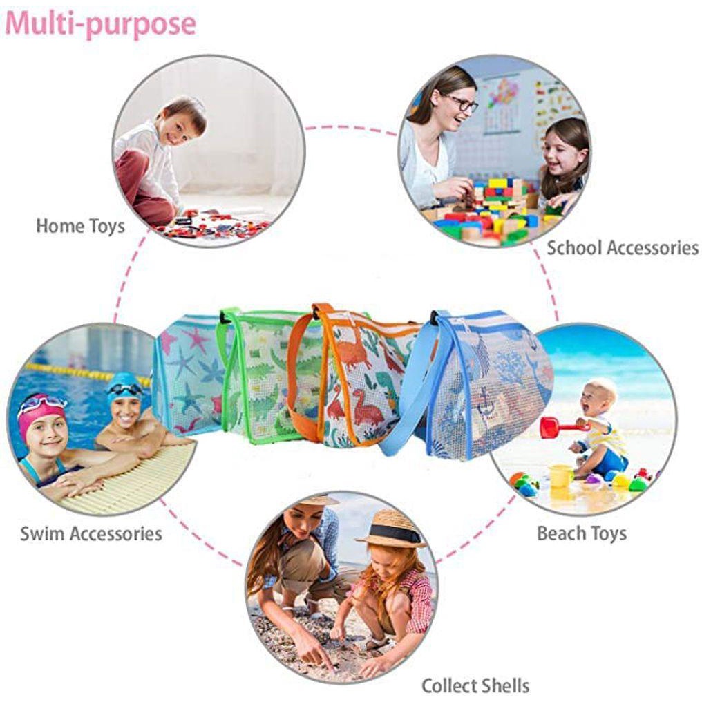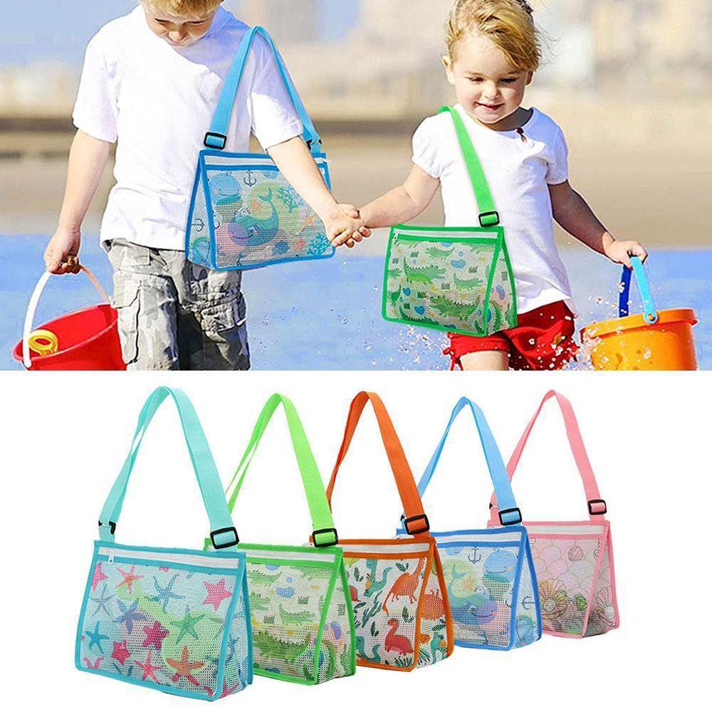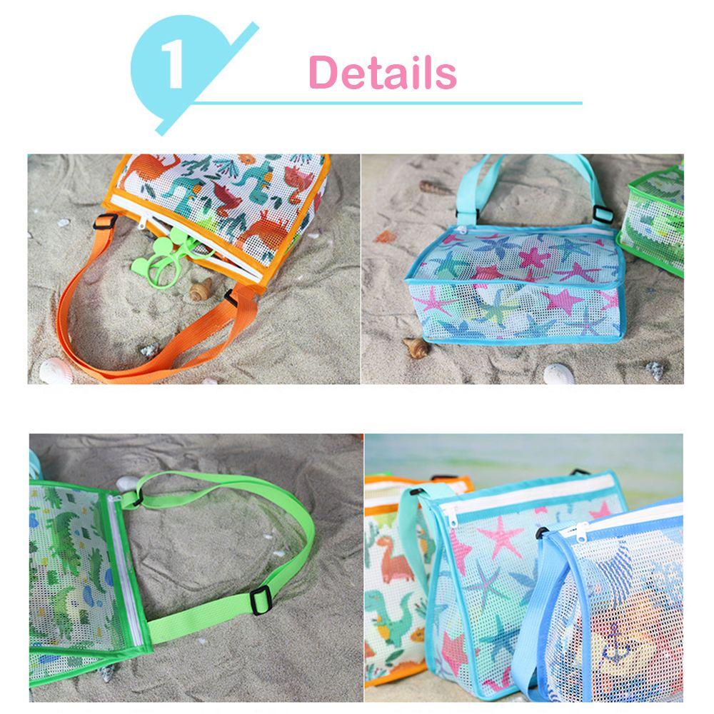 Mesh Beach Bag Beach Toys Pouch Kids Shell Bags Storage Bag Sundries Organizer Swimming Tote Shoulder Bag Handbag Children Outdoor Sand Toy Girls Boys Sport Travel Printed Cartoon Foldable Large