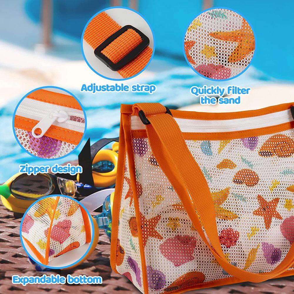 The beach shell bag can be folded into a small size, takes up a small space, and can be easily stored in handbags, drawers and suitcases. This beach toy bag can store toys and can be hung