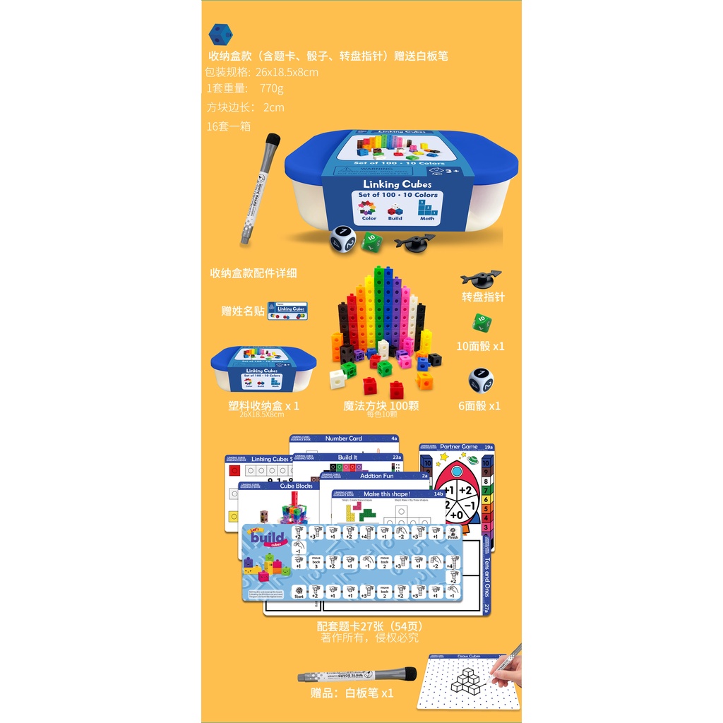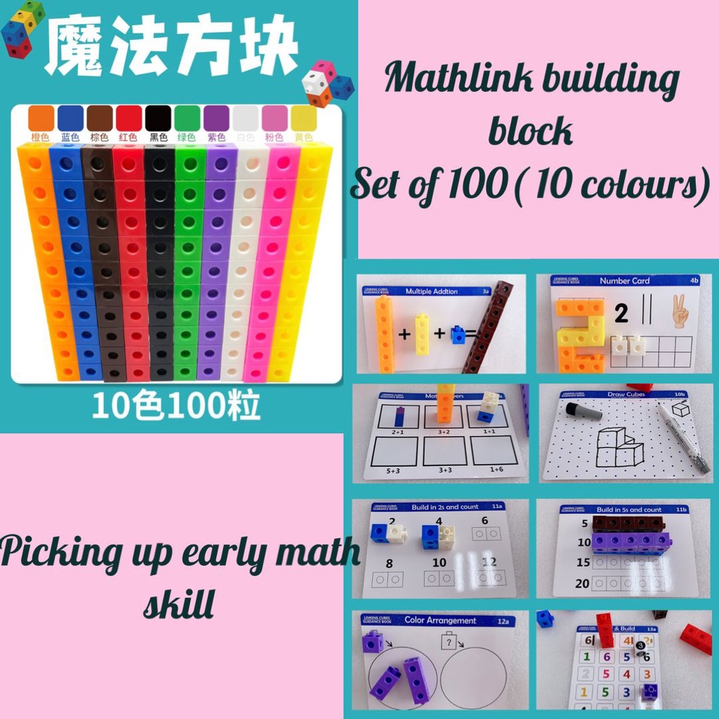 Linking Cubes Set of 100 Mathlink Building Blocks With 27 Activity Cards