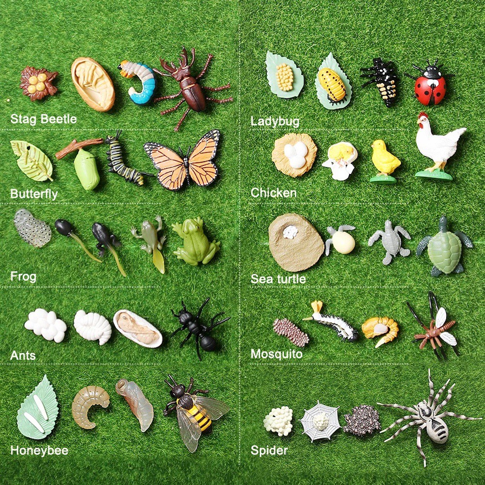 BLUEVELVET Simulation Animals Growth Cycle Butterfly Ladybug Chicken Life Cycle Figurine Plastic Models Action Figures Educational Kids Toy
