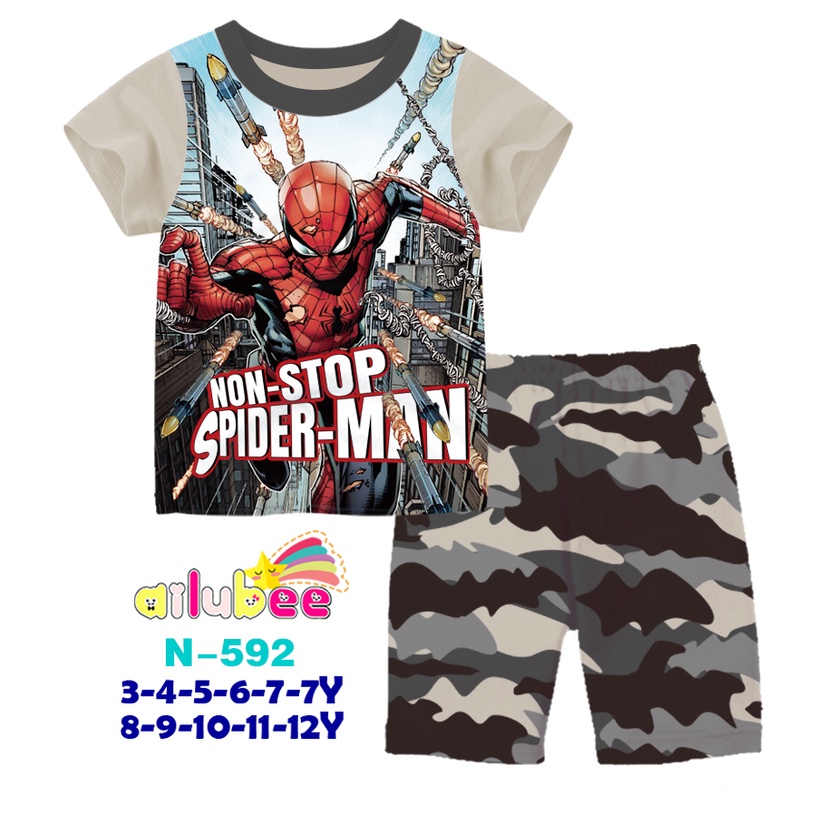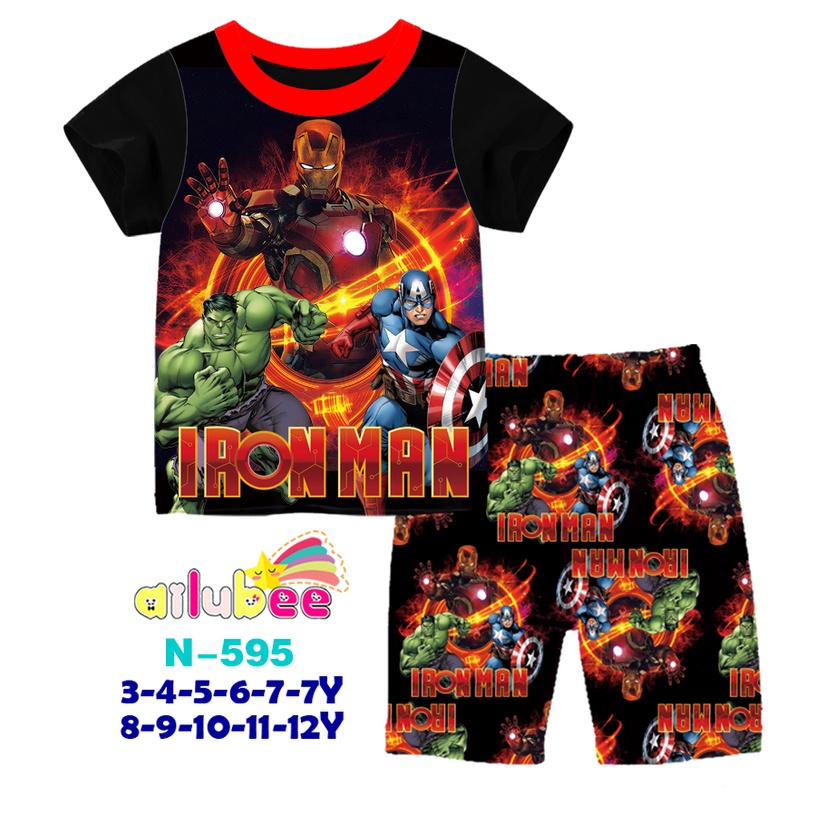 Ailubee BOY Casual Wear - Age 3-7Y Kids 3 to 7 year old Ailubee Set Kids Boy Set Short Sleeve Short Pant Sonic/AmongUs/Ironman/Spiderman/Bumblebee