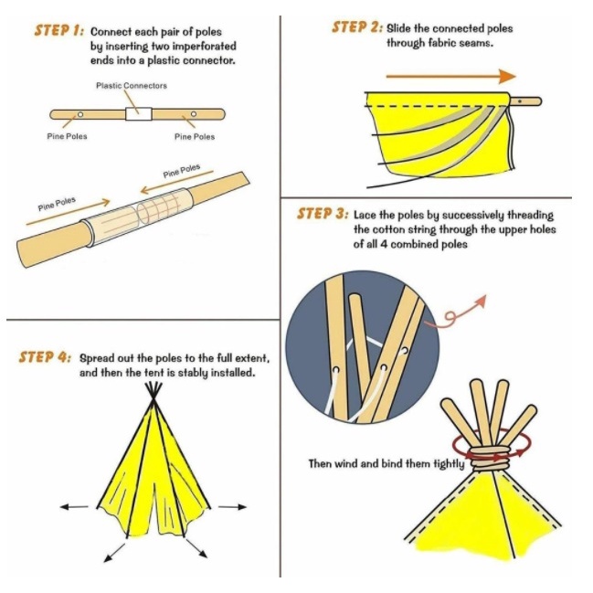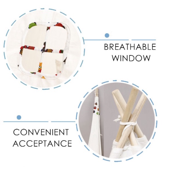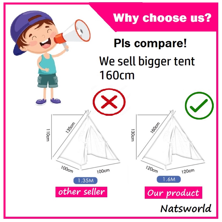 5. More stable: You certainly don't want to buy a tent that may collapse or fall down when kids play in it. Our teepee has a wider base than normal size, which means more room and more stable.