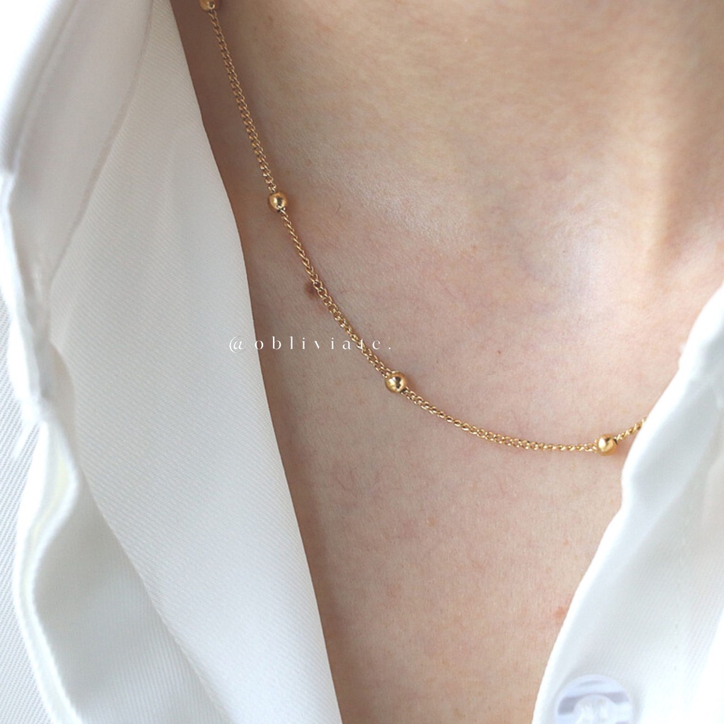 Beaded Basic Chain 18K Gold Necklace • Waterproof Non Tarnish Jewelry • 316L Stainless Titanium Steel Necklaces for Women NL129