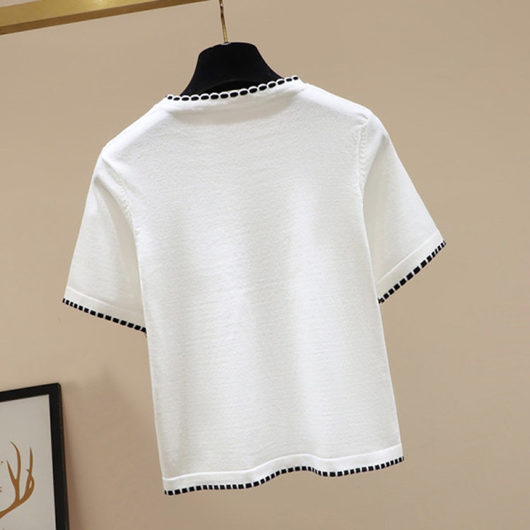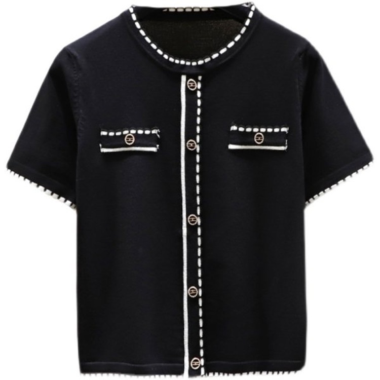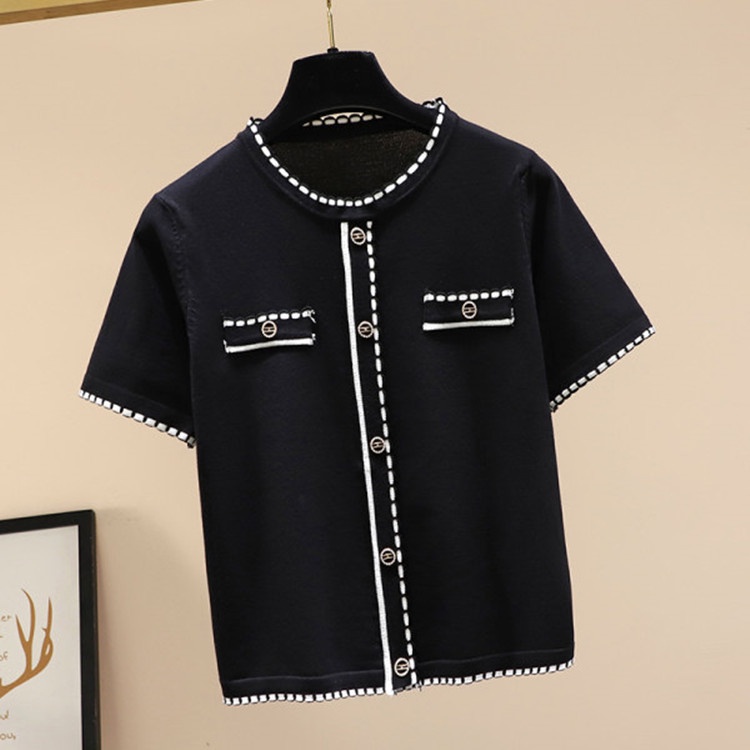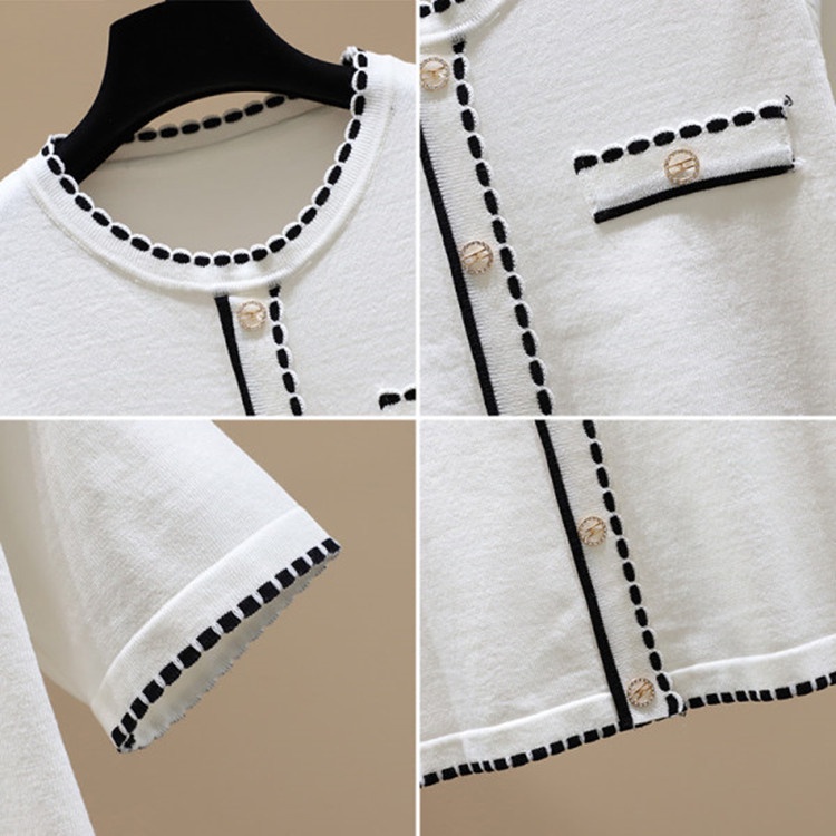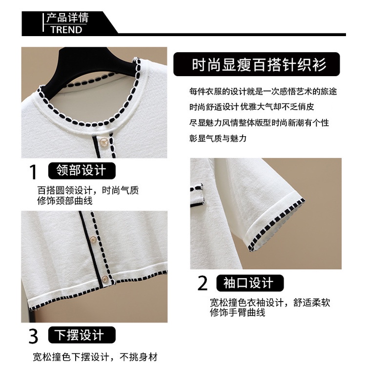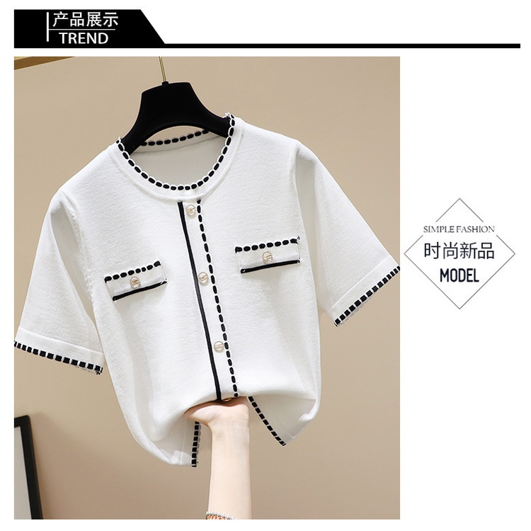 #Ready stock #New #short #coat #Women's clothing #T-shirt #Xiaoxiangfeng #knitting #Round neck #temperament
