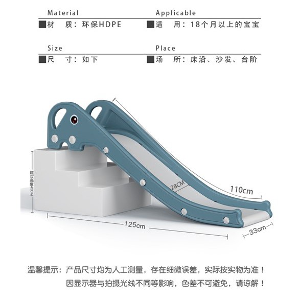 Recommend height 45cm for the Slide, Suiteable 18 ~ 48 Months Kids.