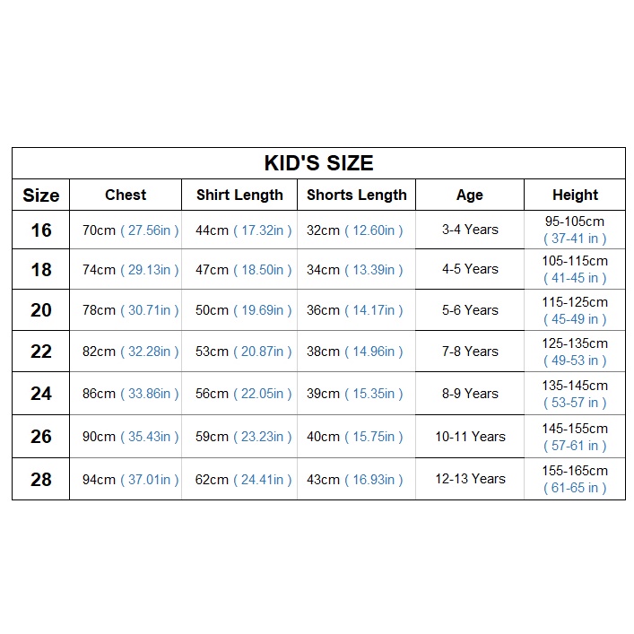 XXXS (16)- 49 CM Clothing Length, 34CM Bust .23CM Sleeve Length, 30CM Lenhth of Pants,46CM waistline, 95-105CM Height