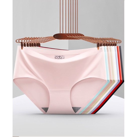 【Ready stock】Women Fashion One Piece Seamless Ice Silk Panties Girls Clothing Underwear Panty SIZE PLUS M-XXL Women Panties Mid Waist Breathable Briefs Female Lingerie