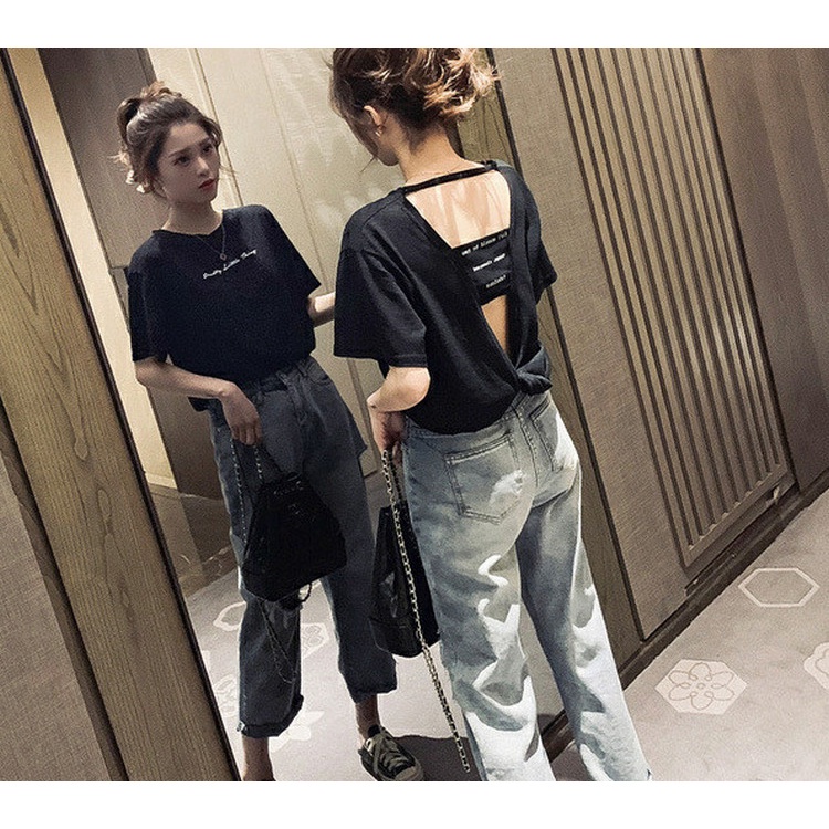 #Ready stock #The New #T-shirt #Jacket #Women's clothing #Short sleeve #Backless #Shirt #Round neck top
